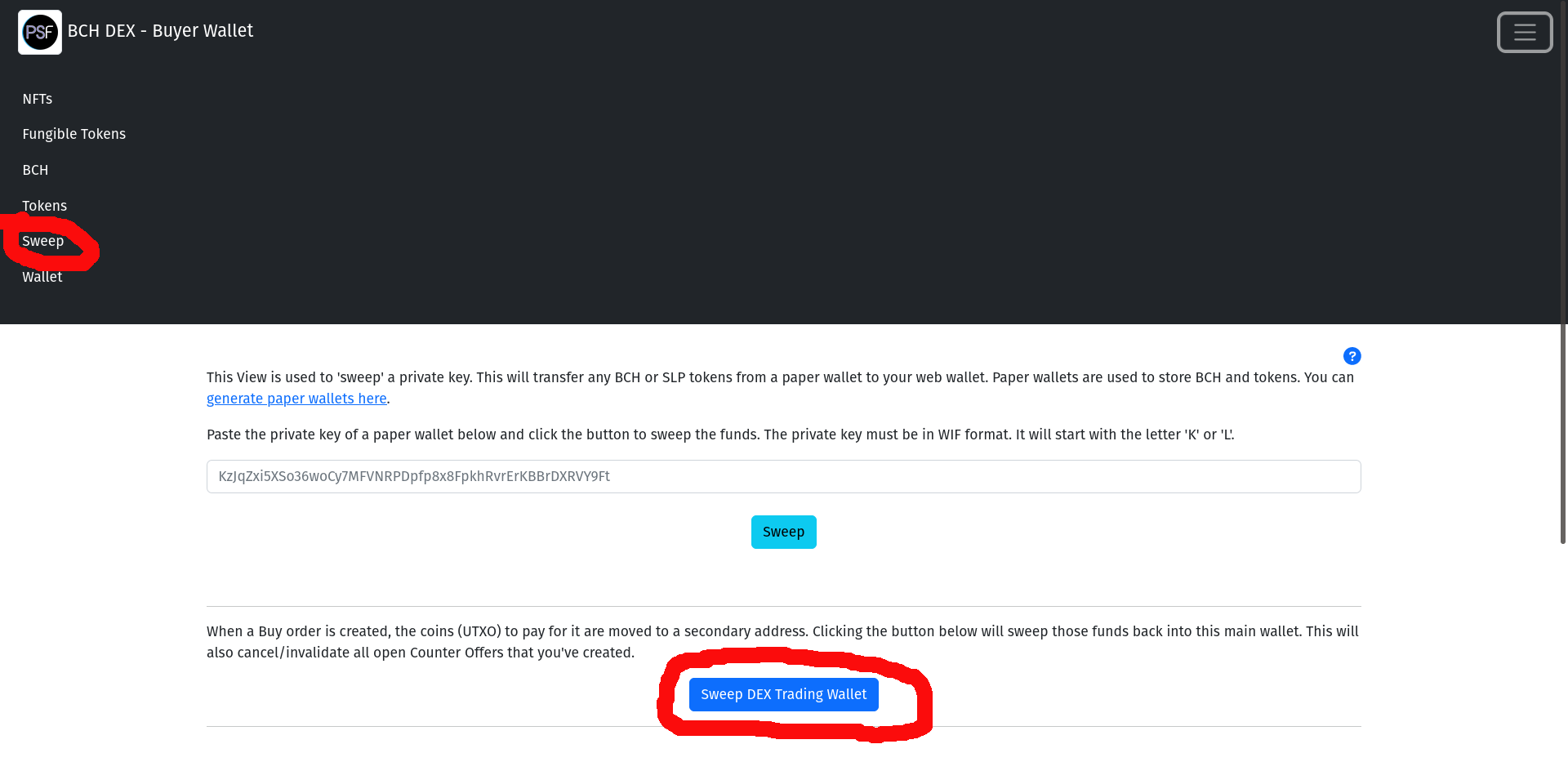 Whenever a Counter Offer is generated, the funds are moved to a child address of the wallet, to protect the UTXO until the sale has been completed. If the token you tried to purchase never appears in your wallet, you can recover those funds and sweep them back into the primary address of your wallet. This is done by navigating to the Sweep view, and clicking the 'Sweep DEX Trading Wallet'. This will automatically cancel the Counter Offer you generated previously.